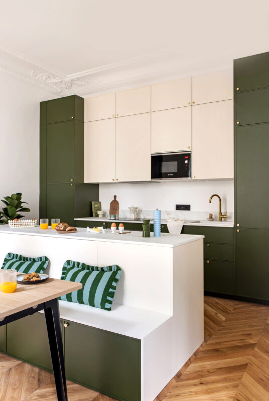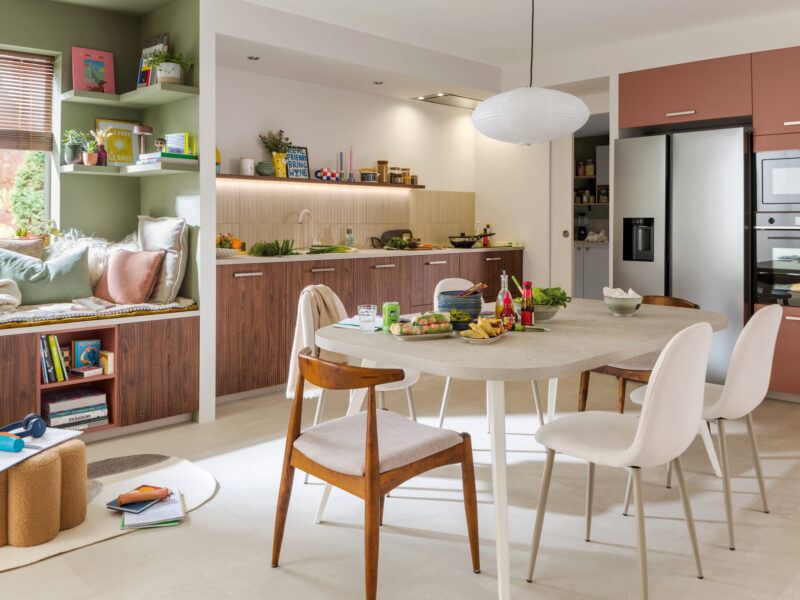 Pour réveiller et réchauffer l’ambiance de la cuisine, osez le jaune, le bleu, le rouge ou encore le vert, qui se marient bien avec l’inox et le bois naturel.