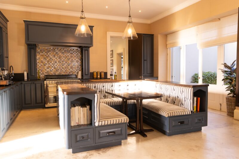 Très tendance, le béton brut ou ciré permet d’obtenir un effet lisse, raffiné et design tout en étant adapté au contact avec les aliments.