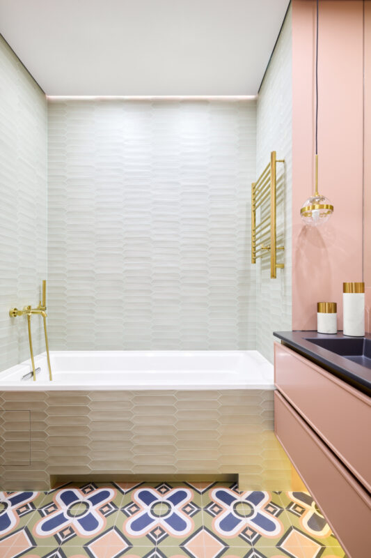La pose de grands carreaux, qui nécessite moins de joints poreux, facilite l’entretien quotidien. Si vous aimez le style bohème, optez pour des modèles colorés ou style azulejos.