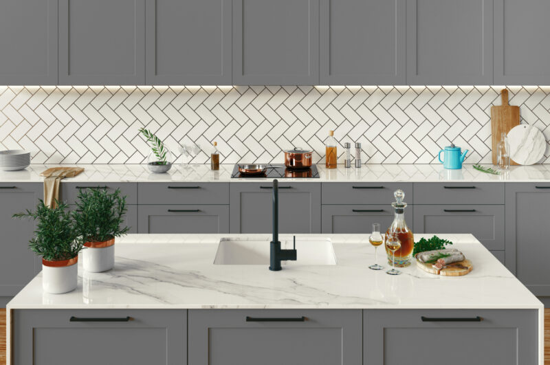 Pour redonner du cachet à votre cuisine, pourquoi ne pas carreler votre vieux plan de travail ?
